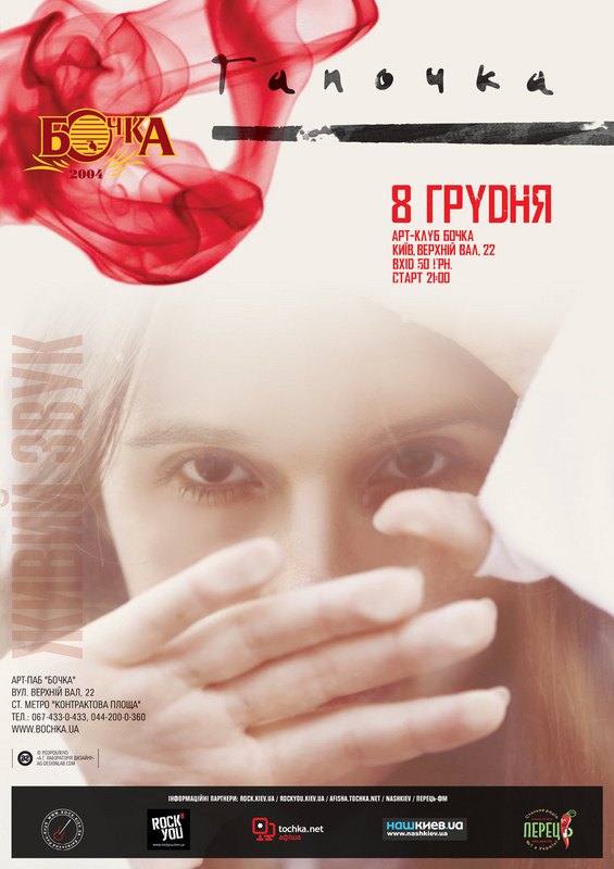 8 грудня київський гурт “Гапочка” відіграє клубний концерт у  Арт-пабі “Бочка” на Подолі. Випустивши в кінці вересня в світ ЕР «Може Я Дівчина?» – “Гапочка” показала свій новий характер у кардинально новому емоційному звучанні. Імпульсивний експеримент музиканти здійснили у тандемі з саунд – продюсером Юрієм Хусточкою( “Океан Ельзи”, “Esthetic Education”) та звукорежисером Іллею Галушко (“Esthetic Education”) Крім того, на початку зими, гурт обіцяє поділитися секретами зйомок кліпу на пісню «Дівчина», режисером якого є гуру кліпмейкерства в Україні – Віктор Придувалов.