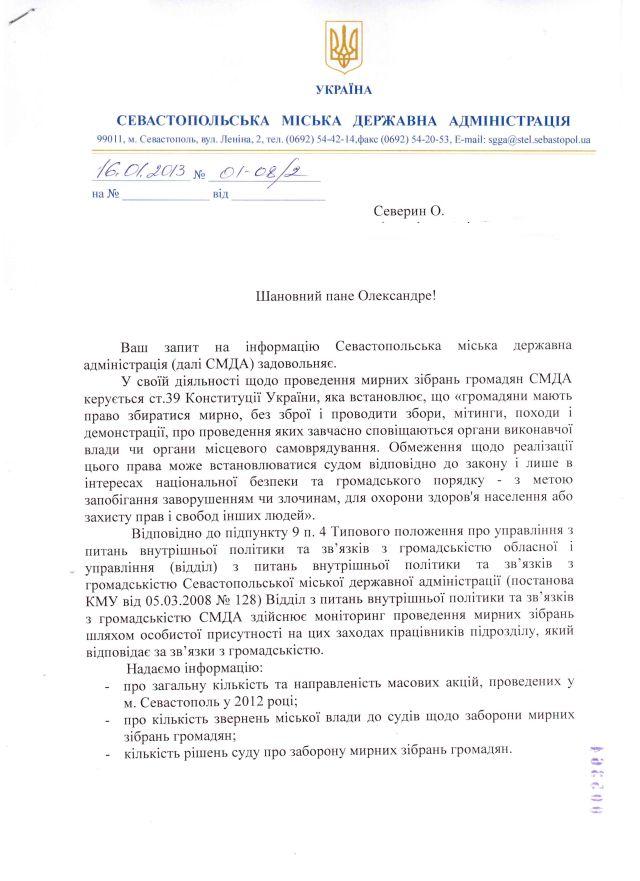 “Майдан-Моніторинг” отримав відповідь від Севастопольської обласної державної адміністрації щодо метолології і результатів проведення моніторингу мирних зібрань у цьому місті.