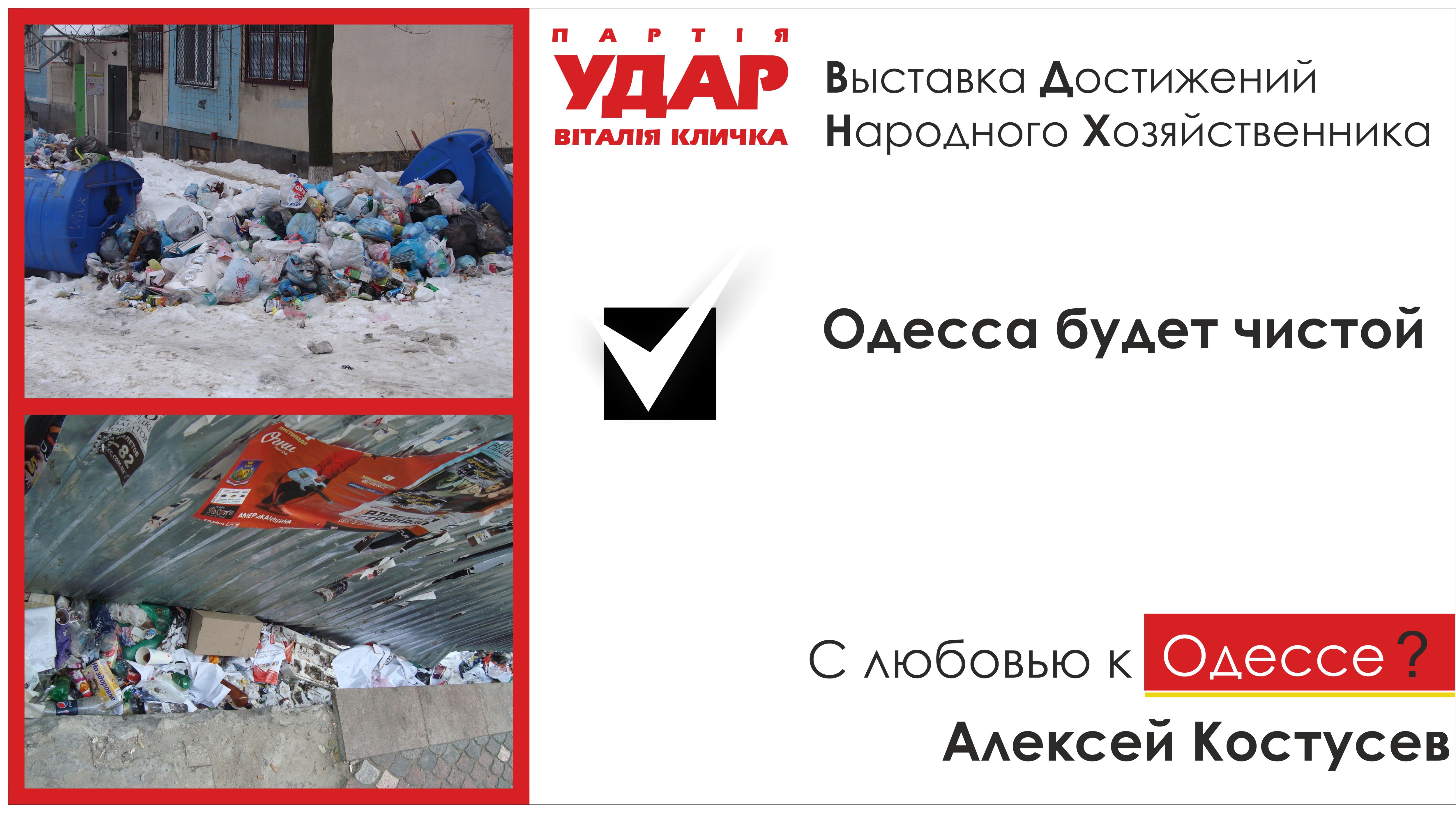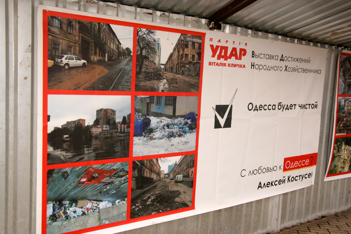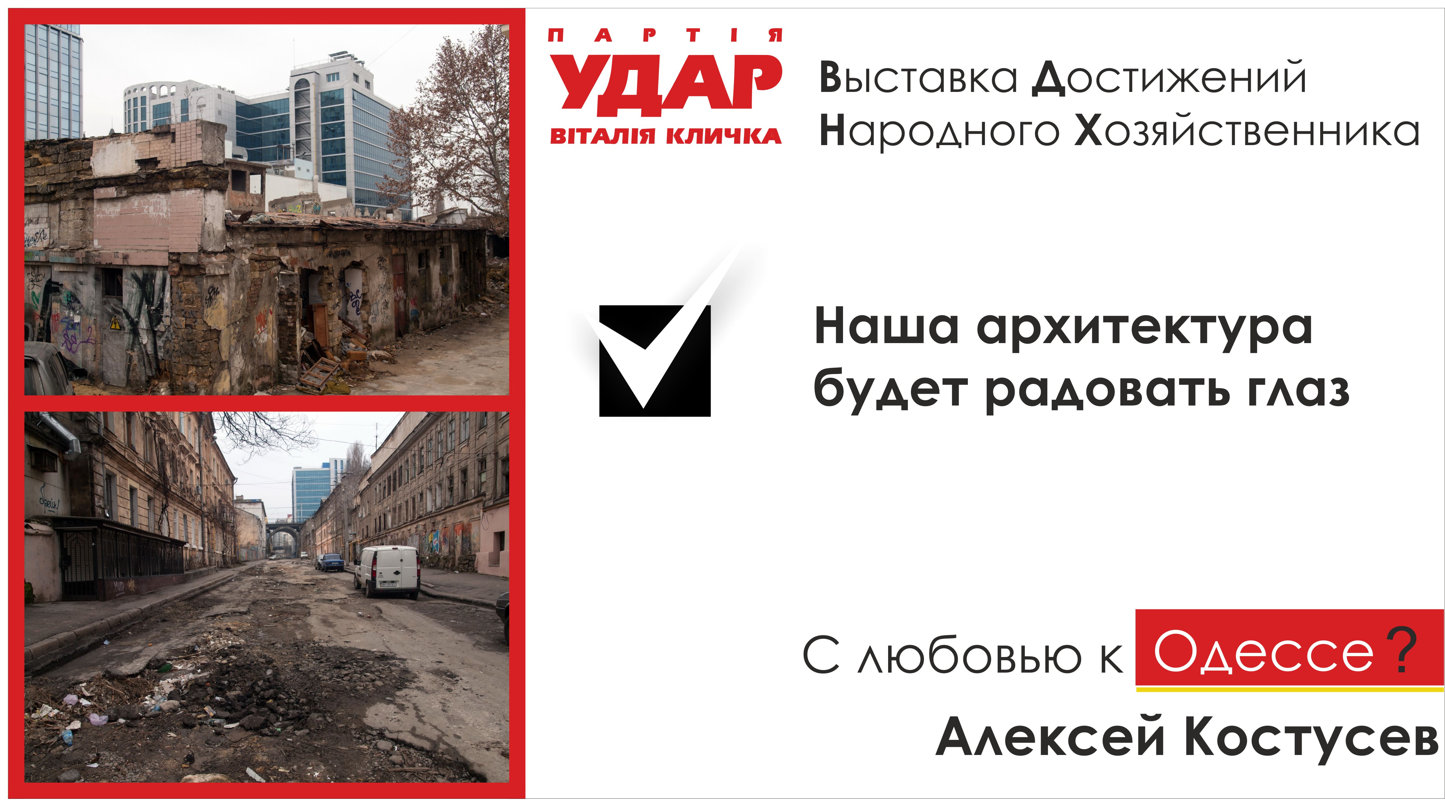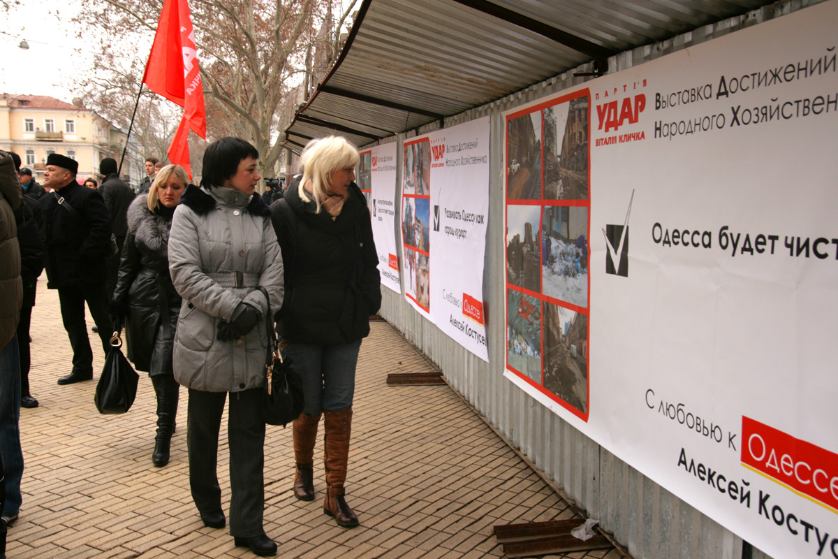 В Одесі “ударівці” підготували альтернативну рекламу Костусєва. 20 лютого 2013 року вони намагались провести мирну акцію протесту, розвісили плакати з обіцянками міського голови Олексія Костусєва та фотографіями реального стану виконання обіцянок.