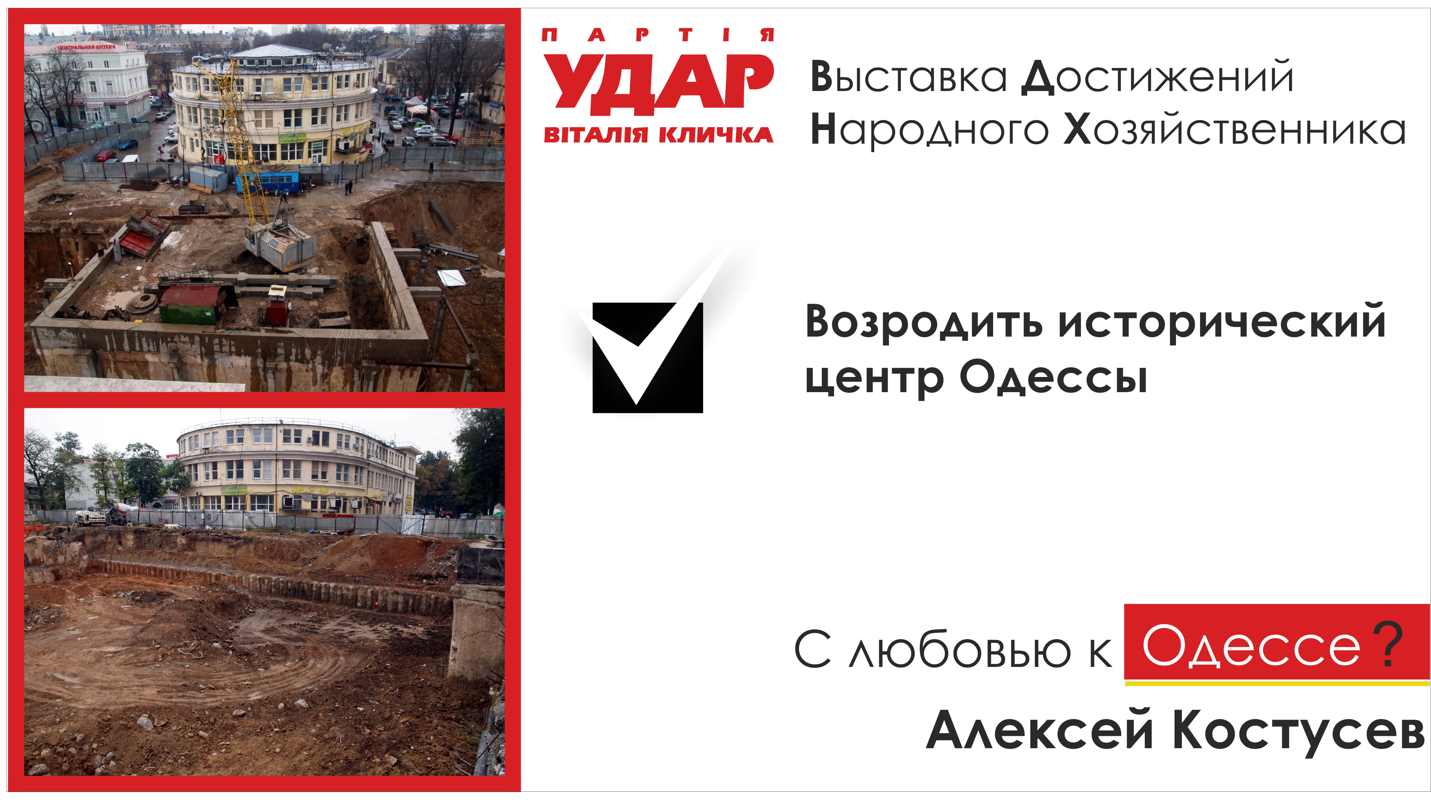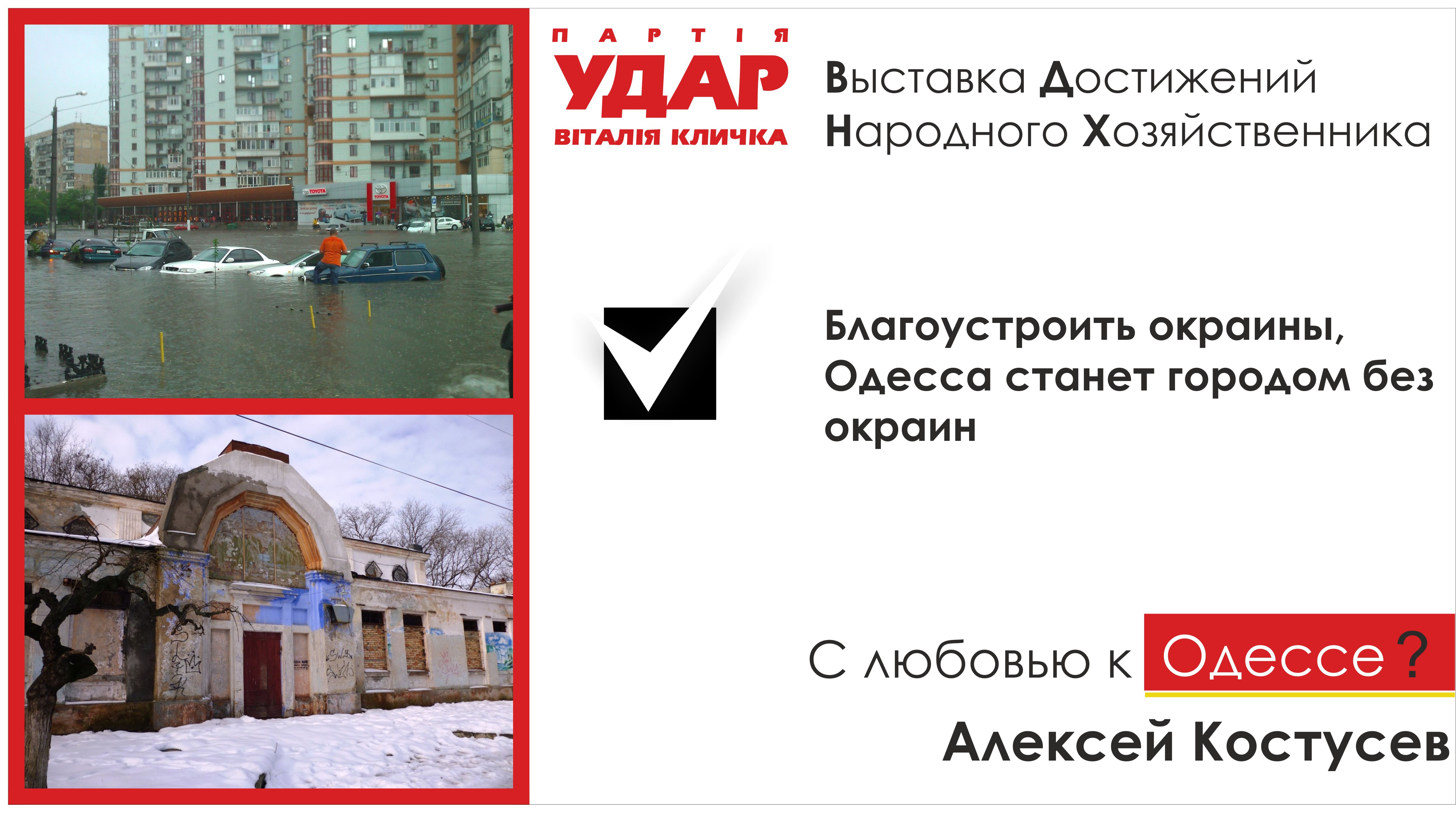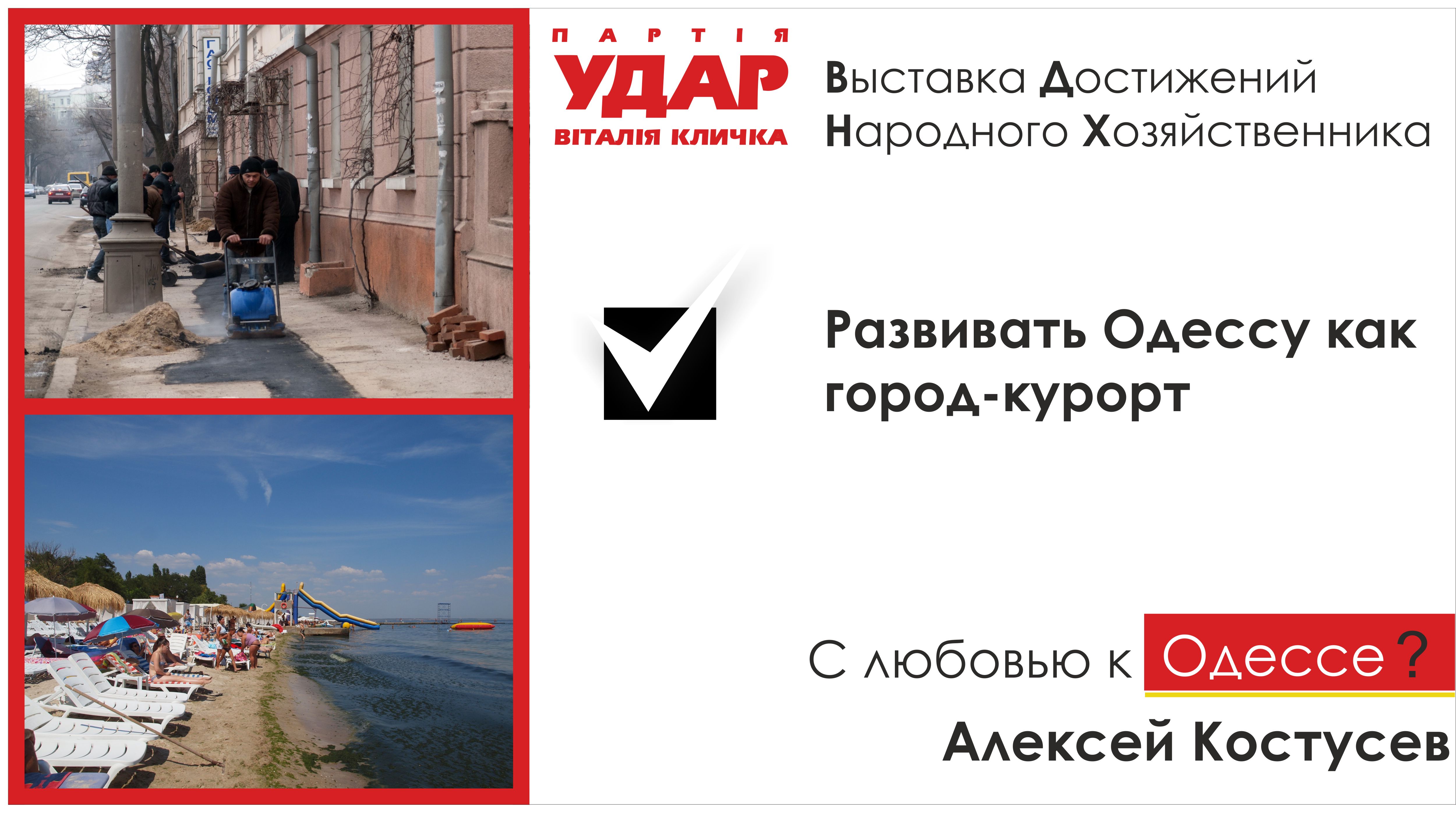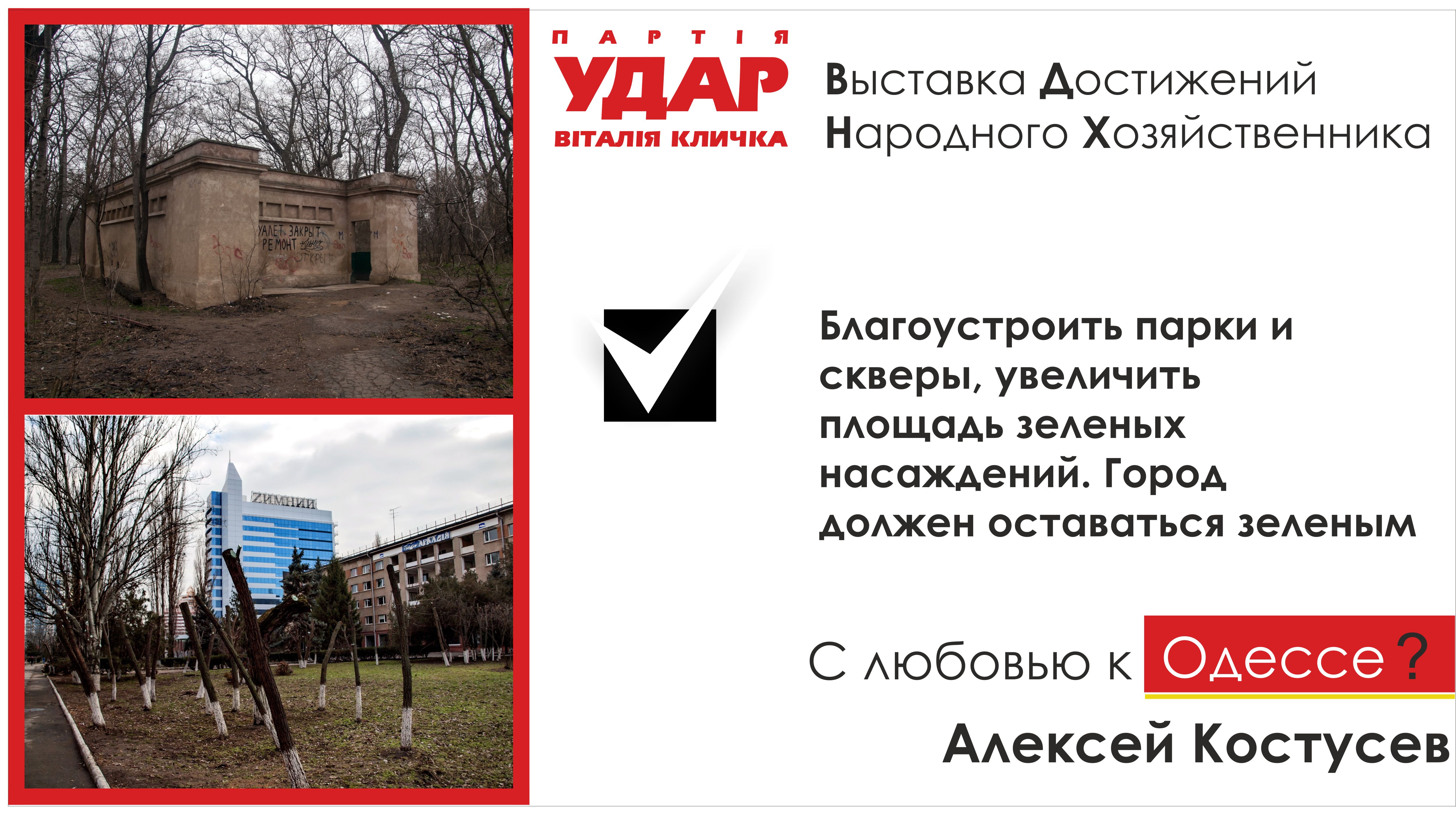 В Одесі “ударівці” підготували альтернативну рекламу Костусєва. 20 лютого 2013 року вони намагались провести мирну акцію протесту, розвісили плакати з обіцянками міського голови Олексія Костусєва та фотографіями реального стану виконання обіцянок.