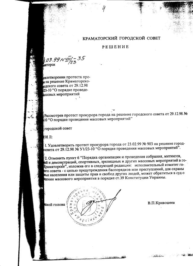 А от аналогічний “Порядок” з Краматорська. Не згадуючи формально той совецький “указ”, “самоврядувальники” теж відверто надихаються ним у своєму “Порядку”. У цьому випадку, як бачимо, навіть прокуратура обурилася тим, що міськрада приписала собі право “забороняти” і змусила змінити відповідний пункт.