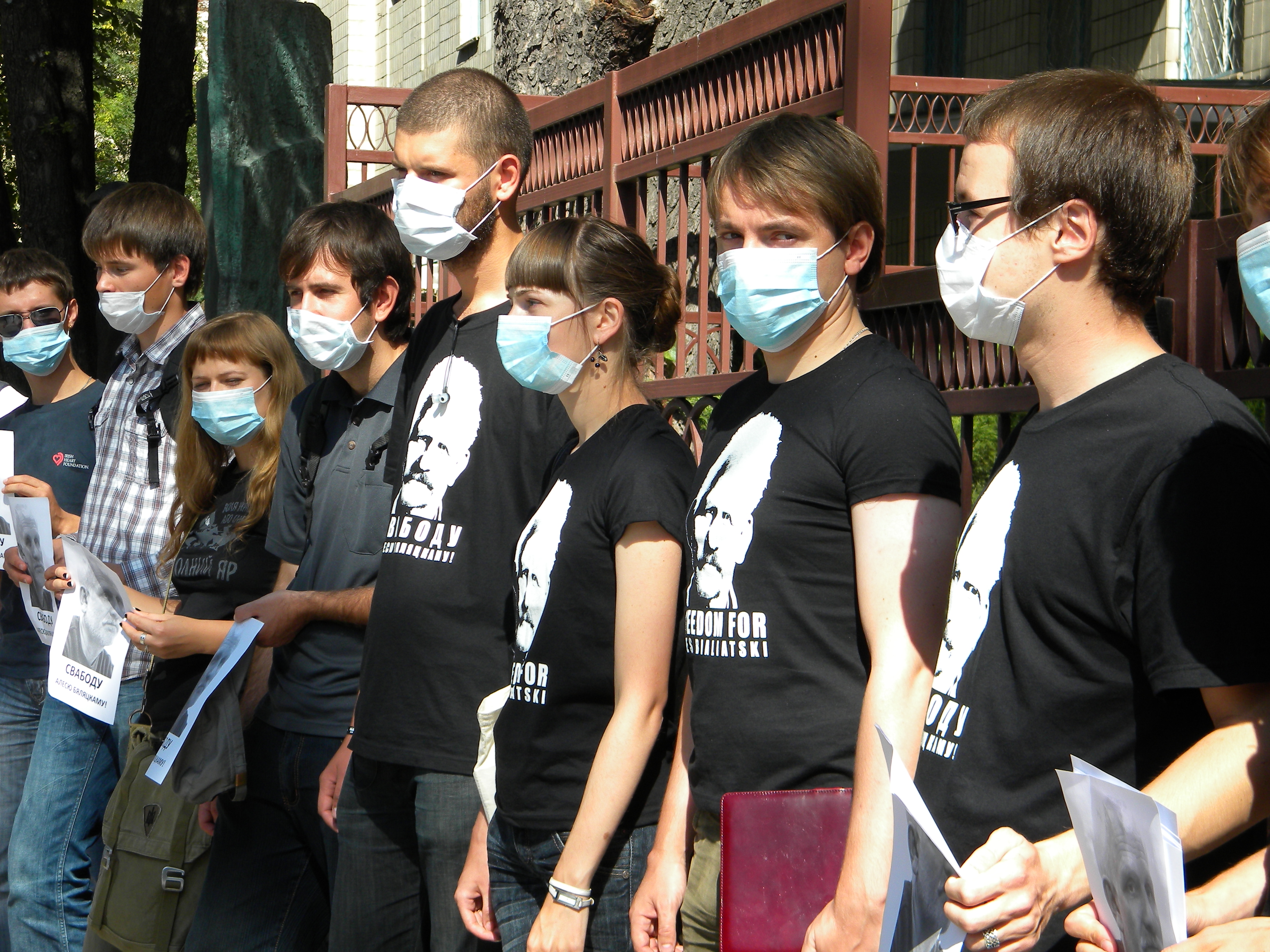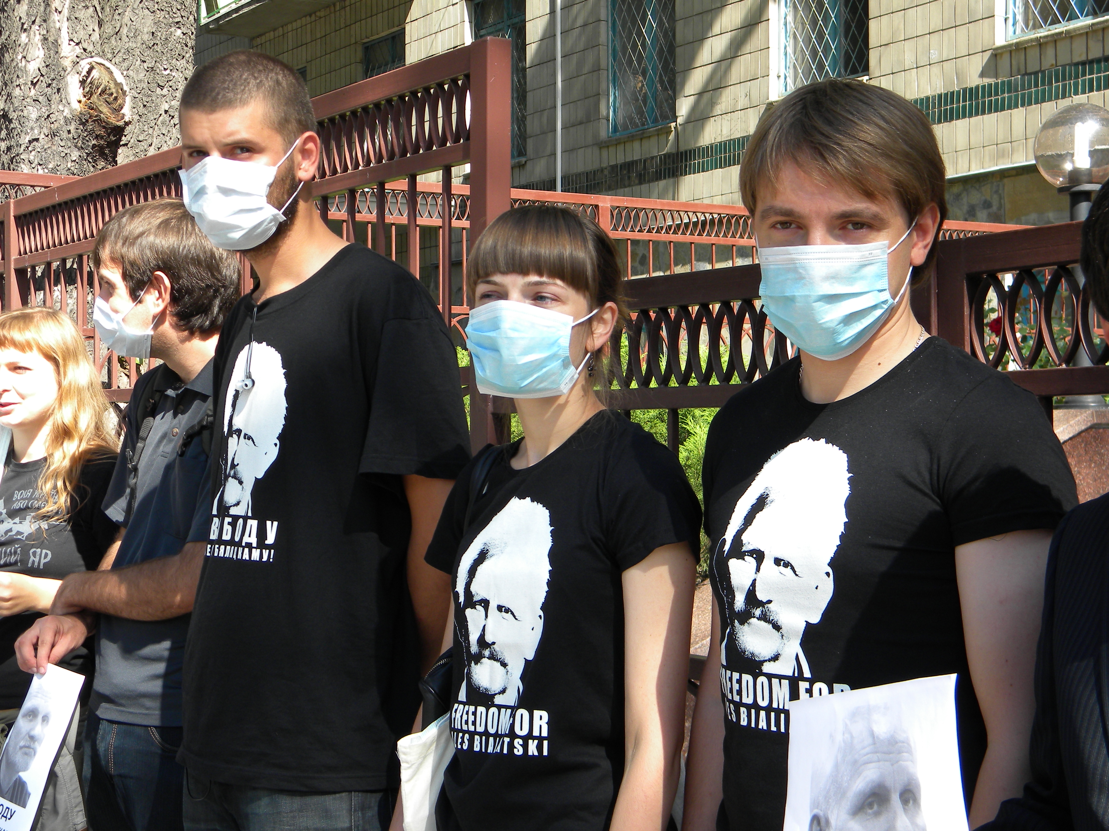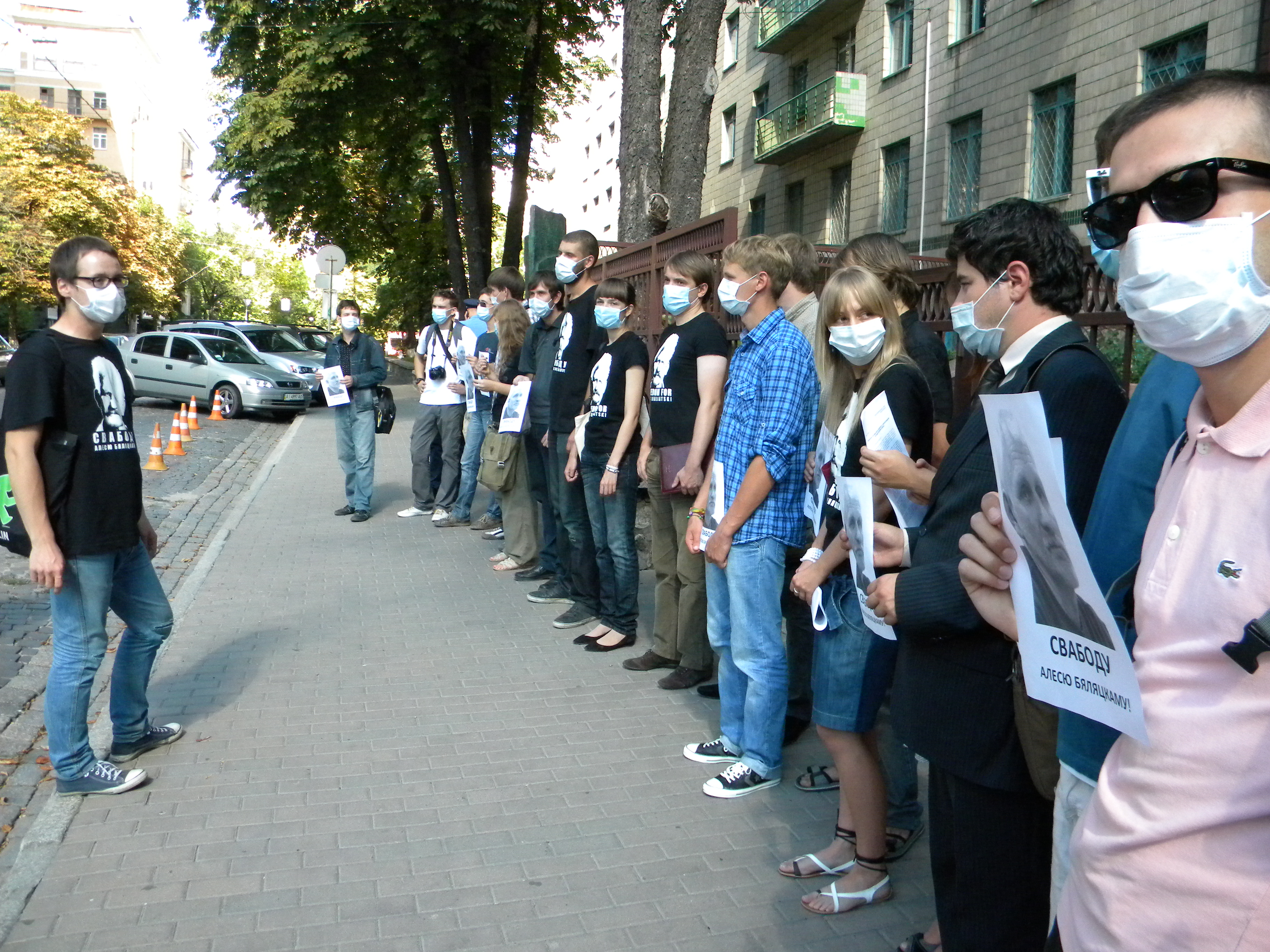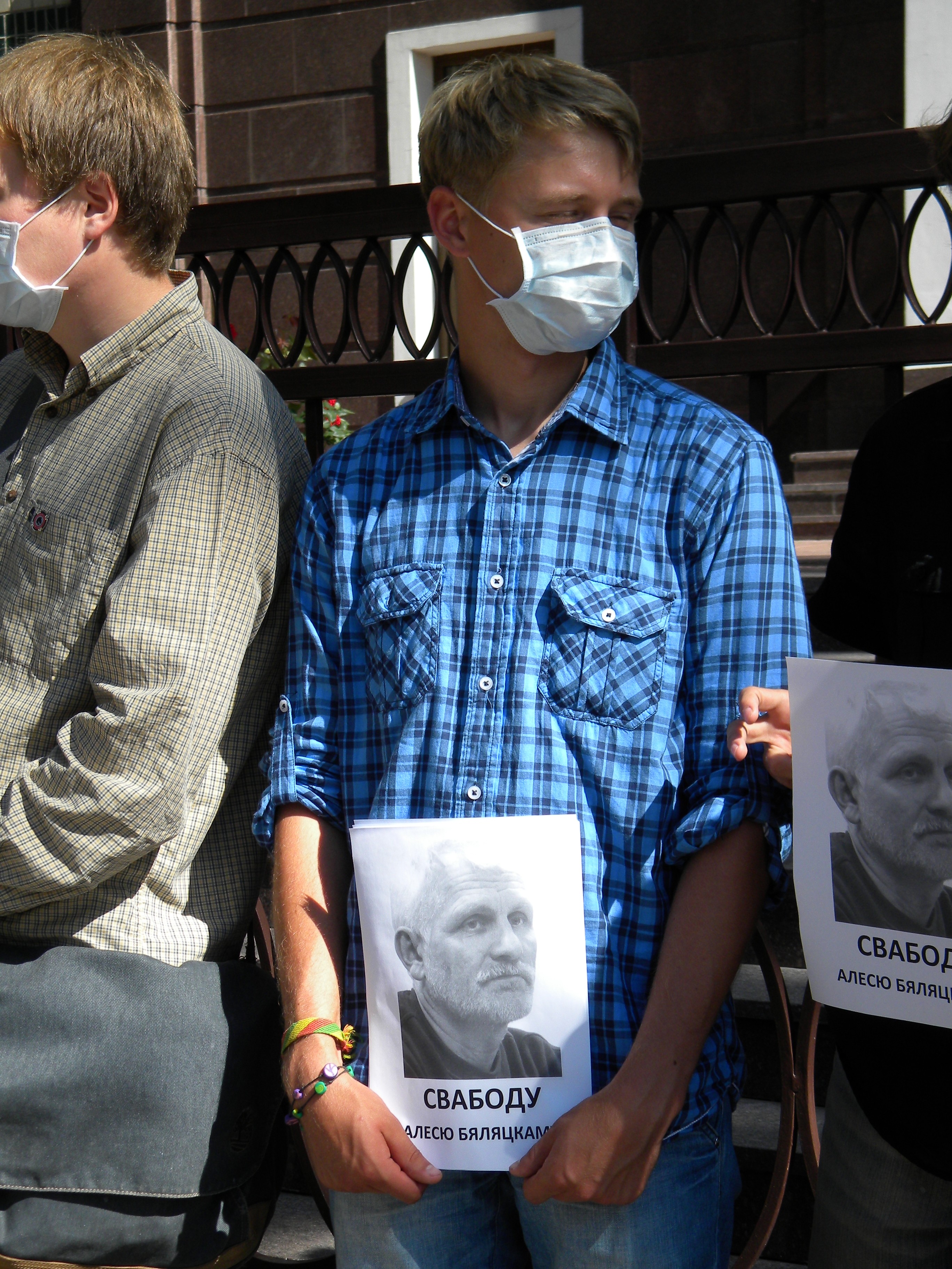 Сьогодні, в Києві під посольством Білорусі, українські громадські активісти та правозахисники провели акцію солідарності з арештованим білоруським правозахисником Олесем Біляцьким. Головна вимога акції — звільнити Олеся та припинити кримінальне переслідування.