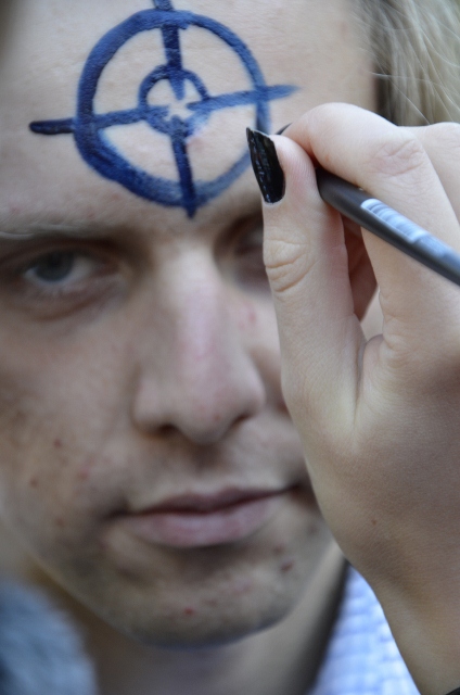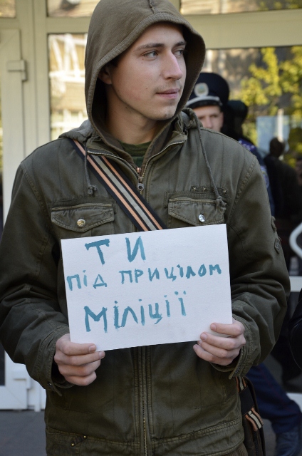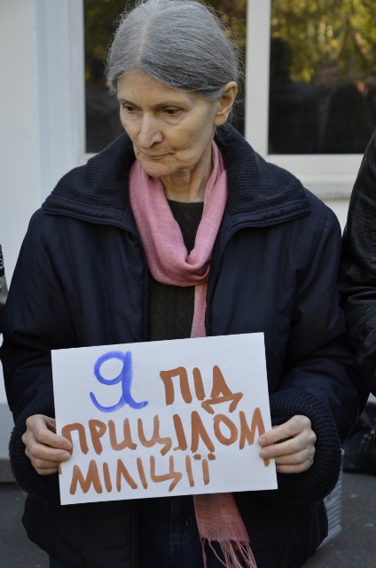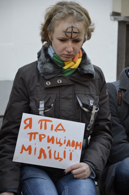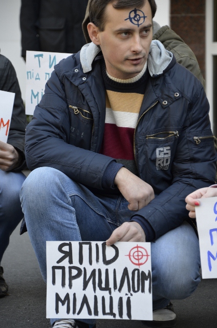 Учасники мітингу малювали один одному на чолі оптичні приціли і тримали у руках таблички «Я під прицілом міліції», «Ти під прицілом міліції», говорячи, що кожен не застрахований від міліцейського свавілля.