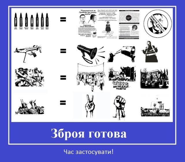 У зв’язку із наміром Партії Регіонів прийняти законопроект «Про вищу освіту», а також у відповідь на заяву президента про те, що сьогодні в Україні закуповується зброя для скоєння нападів на органи влади, студенти заявляють, що самовіддано використовуватимуть знаряддя ненасильницького спротиву для знищення рейтингу партії більшості та викриття її антинародної політики.