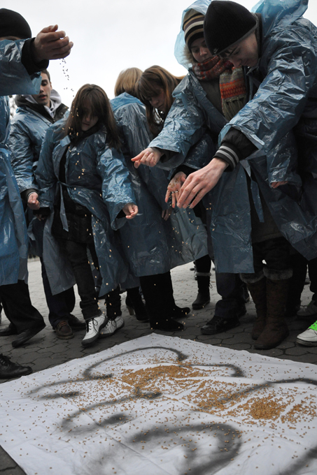 По завершенні дійства кожен учасник вивипав жменьку зерна на банер «1933», адже за офіційними даними кількість хліба, яка припадала на одну людину, становила не більше, ніж 50 грам.