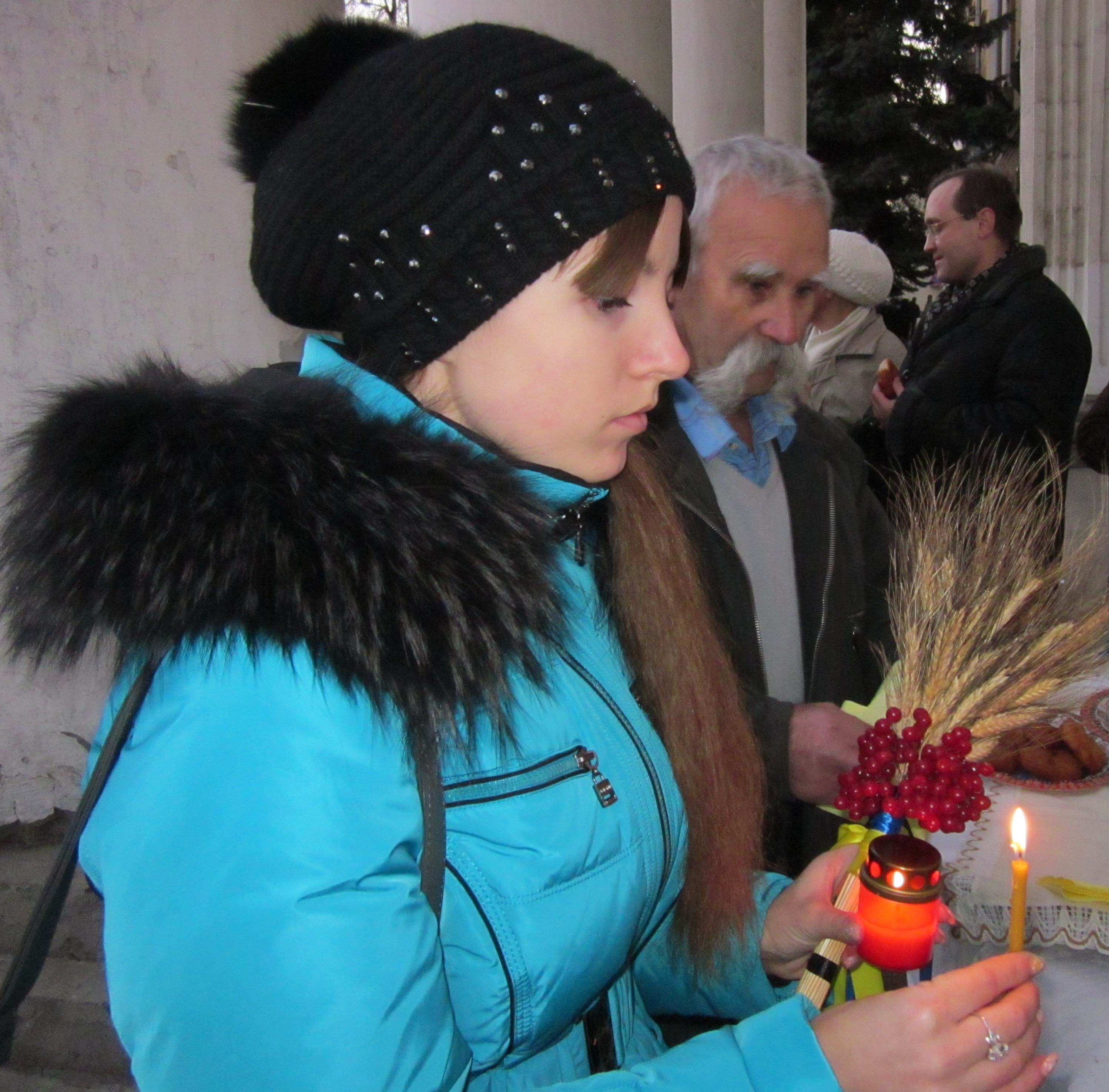 Біля пам’ятного знаку пам’яті жертв Голодомору – геноциду (приміщення Української Православної Церкви Київського Патріархату) зібралися громадяни України – молодь, люди похилого віку, представники громадських організацій, політичних партій, ветерани організації Кримськотатарського національного руху.