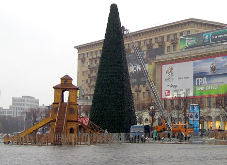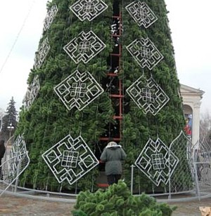 Первая такая «экологическая» елка появилась в Киеве на площади перед дворцом «Украина».