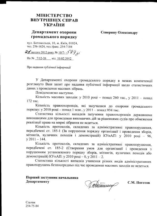 Право на мирні зібрання в офіційній міліцейській статистиці 24-02-2012 13:51 sean Language switcher Français FR Українська UK Deutsch DE Español ES Dansk DA Відповідь на запит, дані за 2010 та 2011 роки. МВС ствержує, що протестувати стали менше. А притягувати до відповідальности стали більше.