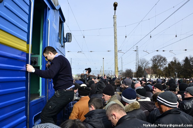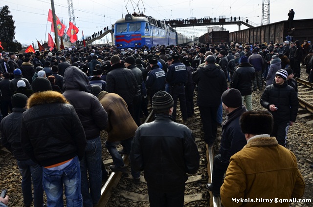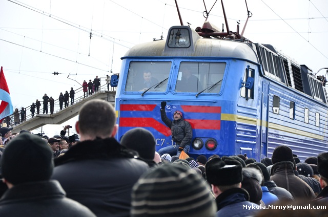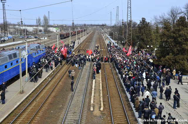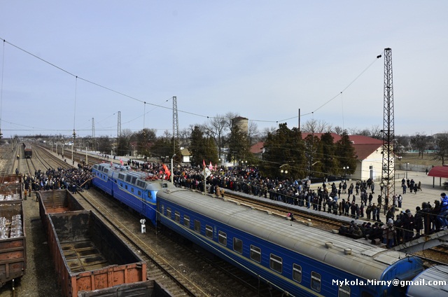 «Не можуть же ж поїзди зупинятись біля кожного стовпа», -аргументовував під час мітингу голова Кримської дирекції Придніпровської залізниці В’ячеслав Гудим. Проте люди налаштовані рішуче. Переважно молоді учасники мітингу захопили колію, заблокувавши потяг № 212 з міжнародним сполученням Керч – Москва. Із запланованої 3-х хвилинної зупинки поїзд вимушений був простояти більше, ніж пів-години.