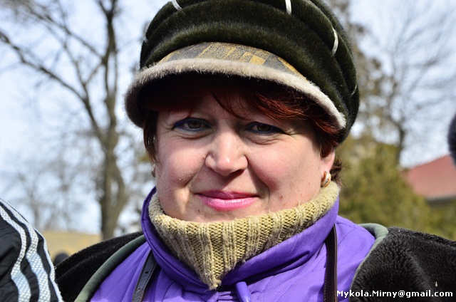 Причина зрозуміла: просто комусь це потрібно! Нехай звозять сюди хоч цілі автобуси з „Беркутом“. Ми полягаємо на цих коліях. Нам або з голоду помирати або відстоювати своє. Ми тут дуже не задоволені владою. Я раніше сильно вірила у Януковича. Аж чотири рази голосувала за нього. А тепер, чесно кажучи, я не знаю, кого підтримувати. На наступних виборах я викреслю усіх.