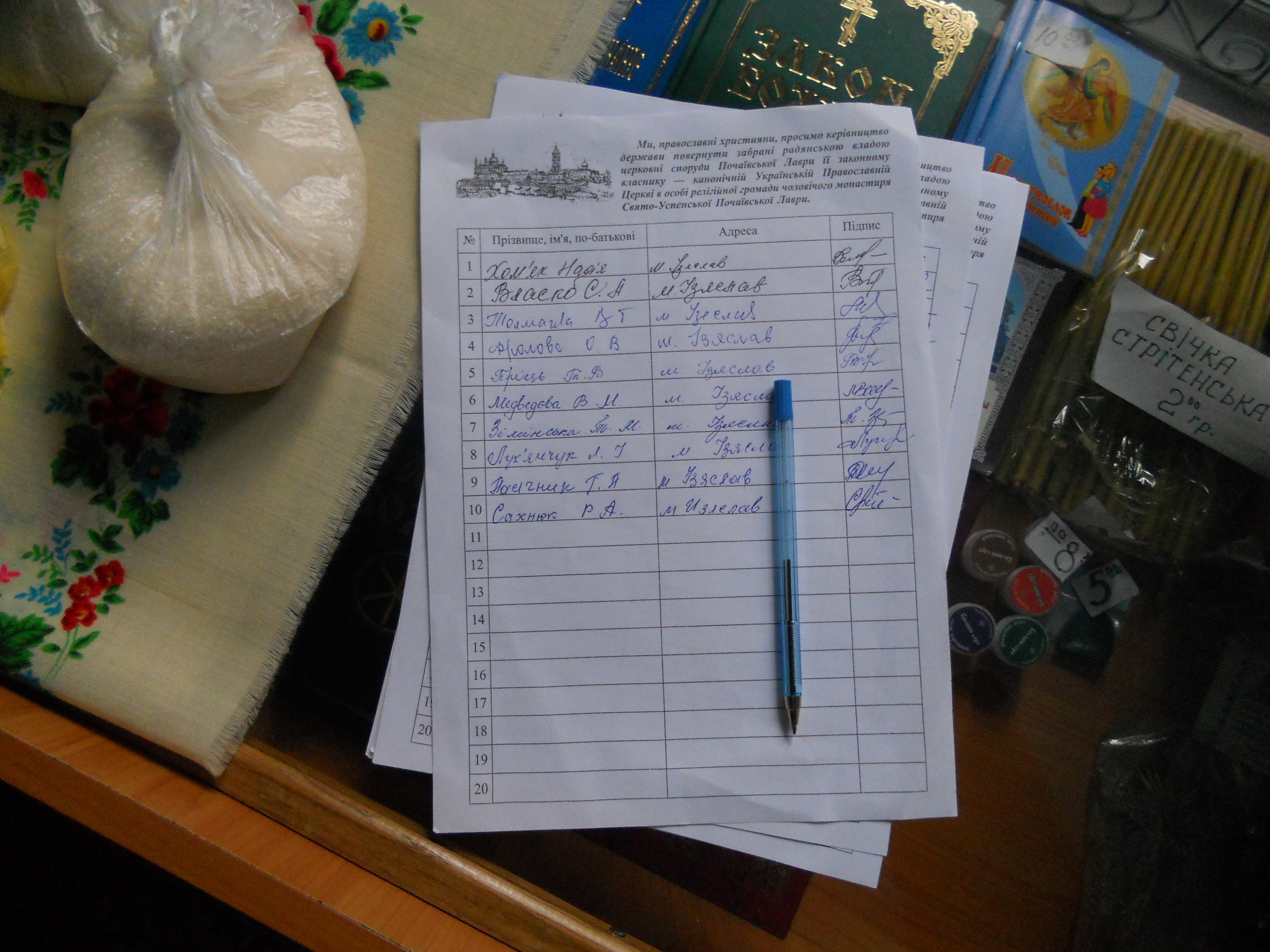 Непоодинокими є випадки, коли люди ставлять свої підписи за намовою, не читаючи шапки бланку, переконані, що підписуються проти приватизації Почаївської лаври. Серед парафіян велика кількість людей похилого віку, мають слабкий зір. Не всі носять із собою окуляри.