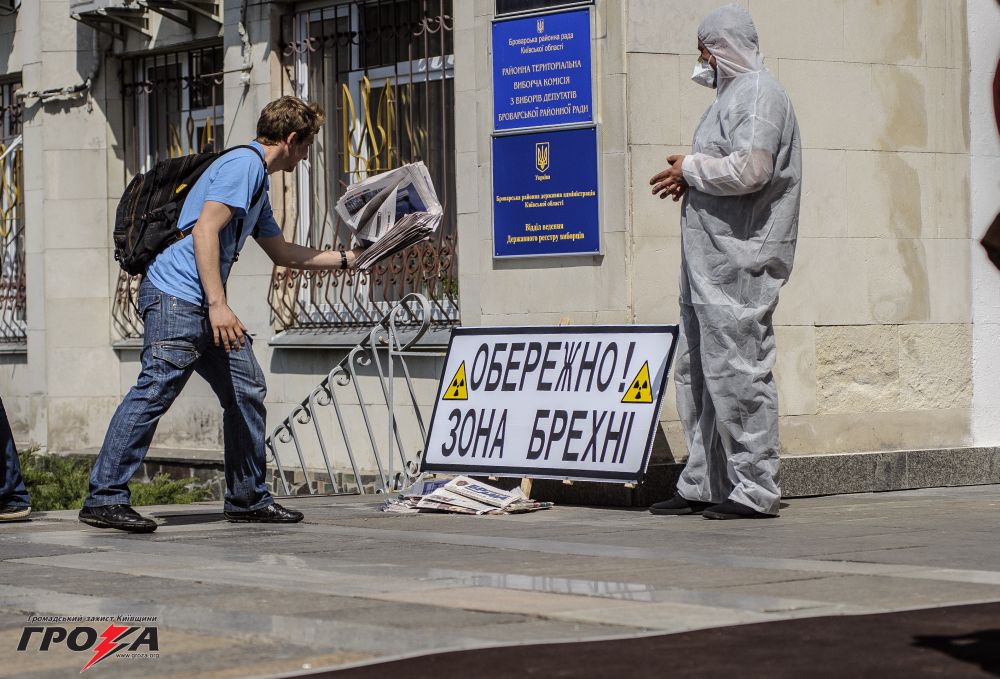 Броварчани вийшли до стін Міської ради на громадську акцію протесту «Бровари – столиця брехні?» Акцію організувала громадська організація «Громадський захист Київщини». Близько сотні городян зібралися, щоб висловити своє обурення випуском фальшивих газет, підроблених під опозиційну пресу. Газети вийшли тиражем понад 60 тисяч примірників і їх друк за різними підрахунками сягнув 100 тисяч гривен. Активісти припускають, що ці кошти могли бути взяті з місцевого бюджету.