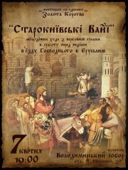 Мистецьке об’єднання “Золота Корогва” презентує захід “Старокиївські Вайї: молодіжна хода з вербовим гіллям у суботу перед в’їздом Господнім в Єрусалим”. До складу об’єднання входять гурт “Хорея Козацька”, театр історичного танцю “Алєнтрада”, гурт “Божичі” та інші молодіжні зібрання, що займаються вивченням, реконструкцією та виконанням старовинної музики, танцю, співу й драми.
