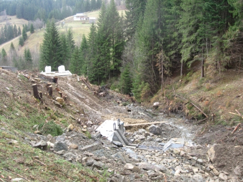 Пройшовши півтори години від центру м.Верховина, активісти громадської кампанії проти знищення Карпат малими ГЕС, виявили самовільне будівництво гідроелектростанції.