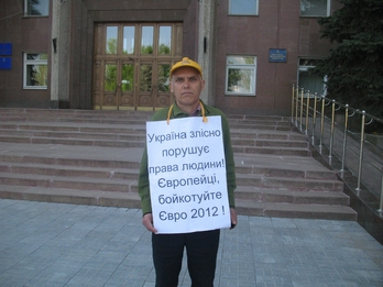 – Жодного відповідного протоколу складено не було. Ніяка експертиза не потрібна. Я нікому не погрожував, не вдарив, не матюкаюся, не замахнувся, а сам собі стояв. Підійшли міліціонери: «Зніміть плакат!». Кажу, що у мене плакат – це фартух, бо вітер і холодно, а у мене легка сорочка, ось я і одягнув фартух, він мене захищав. Вони запитали про напис на плакаті, але на куртках у багатьох щось написано, – пояснив Ільченко.