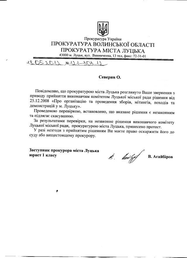 Відповідь заступника прокурора м.Луцька – до вашої уваги.