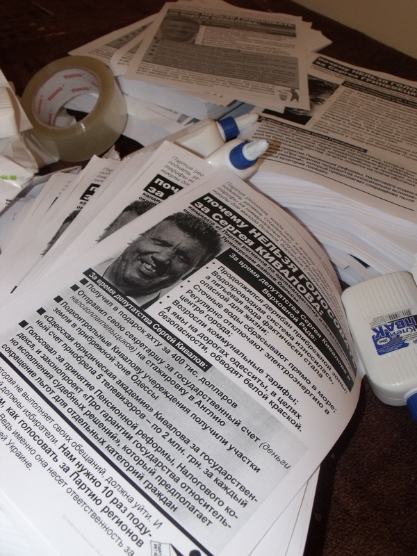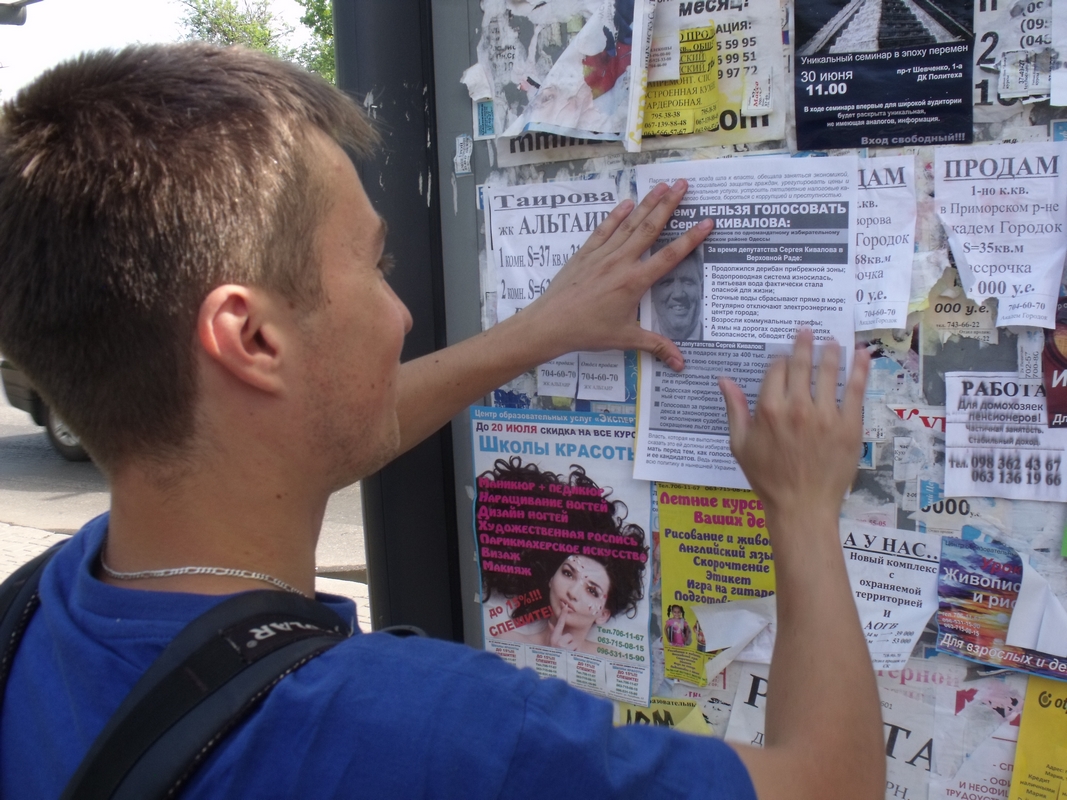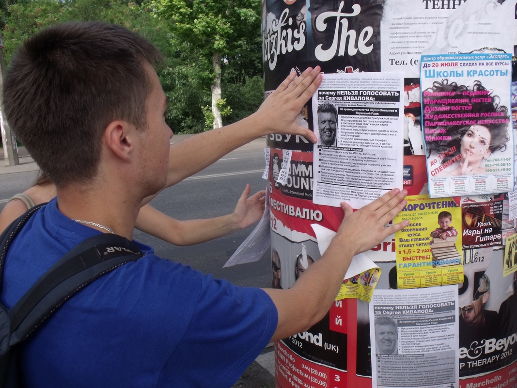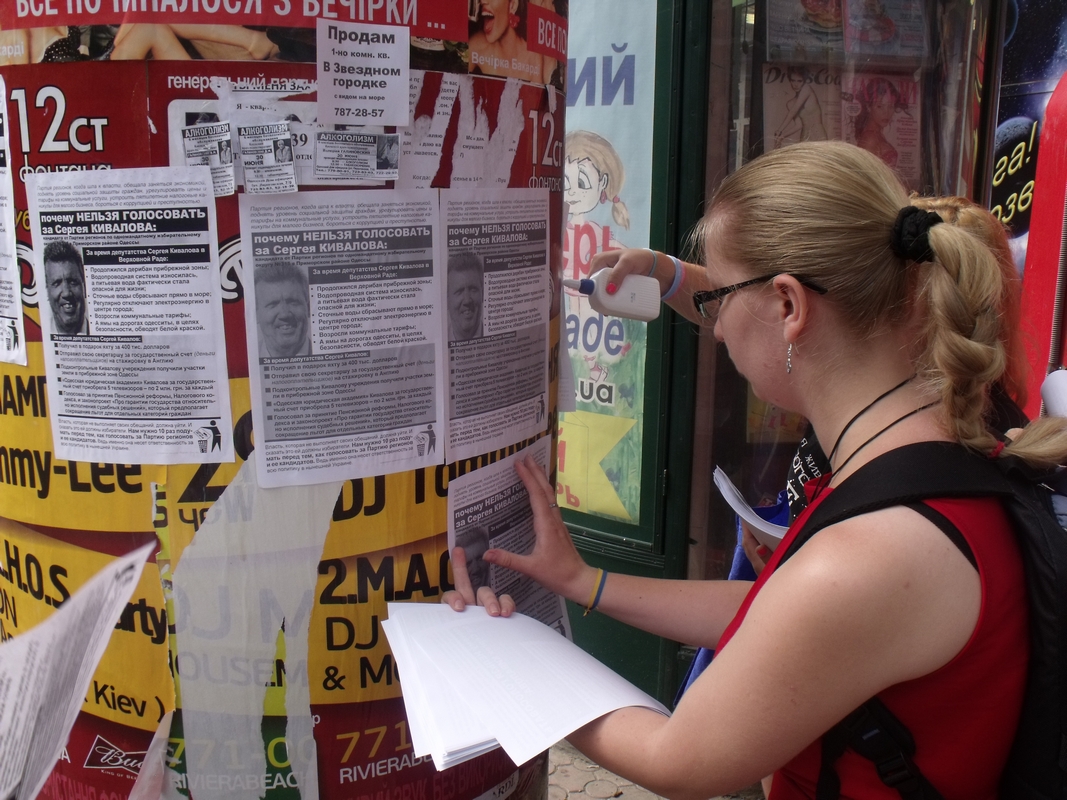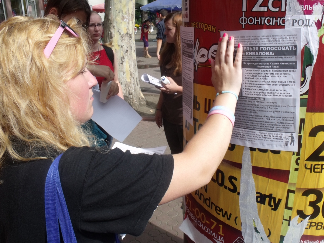 Разом з місцевими активістами вони обклеїли листівками весь Приморський район міста, де збирається балотуватись “Підрахуй”, роздавали листівки людям. Одесити про Ківалова відгукувалися дуже погано, з охотою читали листівки й розповідали активістам про інші “гріхи” депутата, кажучи, що не будуть за нього голосувати.