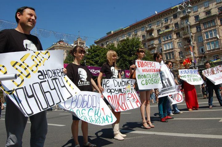 – Цим ми висловлюємо своє захоплення з приводу запланованого відвідання Лукашенком фінального матчу Євро 2012, – пояснила одна з активісток. – Нас охоплює радість, коли ми згадуємо про стан демократії та рівень дотримання прав людини в Білорусі. Ми хочемо поділитися цією радістю з усіма довкола!