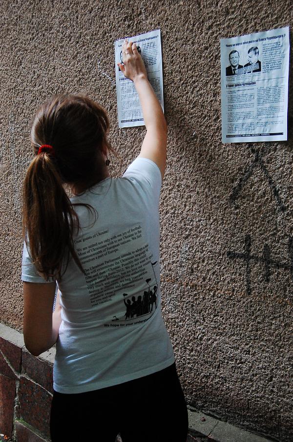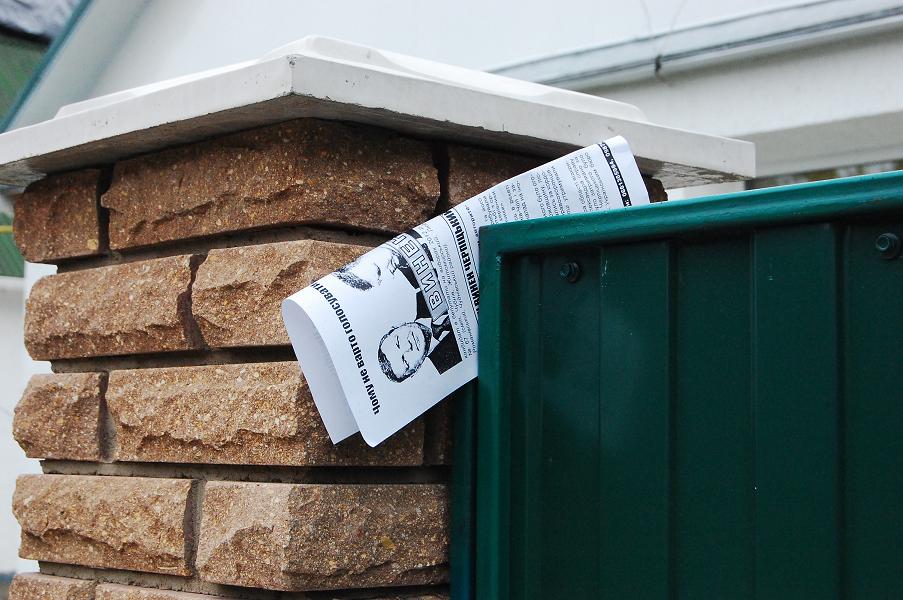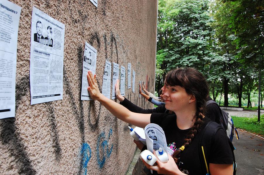 Активісти суцільно заклеїли листівками “Чому не варто голосувати за Олега Черпіцького” центр округу – селище Чуднів, а також сусіднє село Вільшанку, де знаходиться залізнична станція Чуднів-Волинський Козятинської дирекції залізничних перевезень. Також листівки (їх було понад 5 тис.) отримали практично всі мешканці цих населених пунктів.