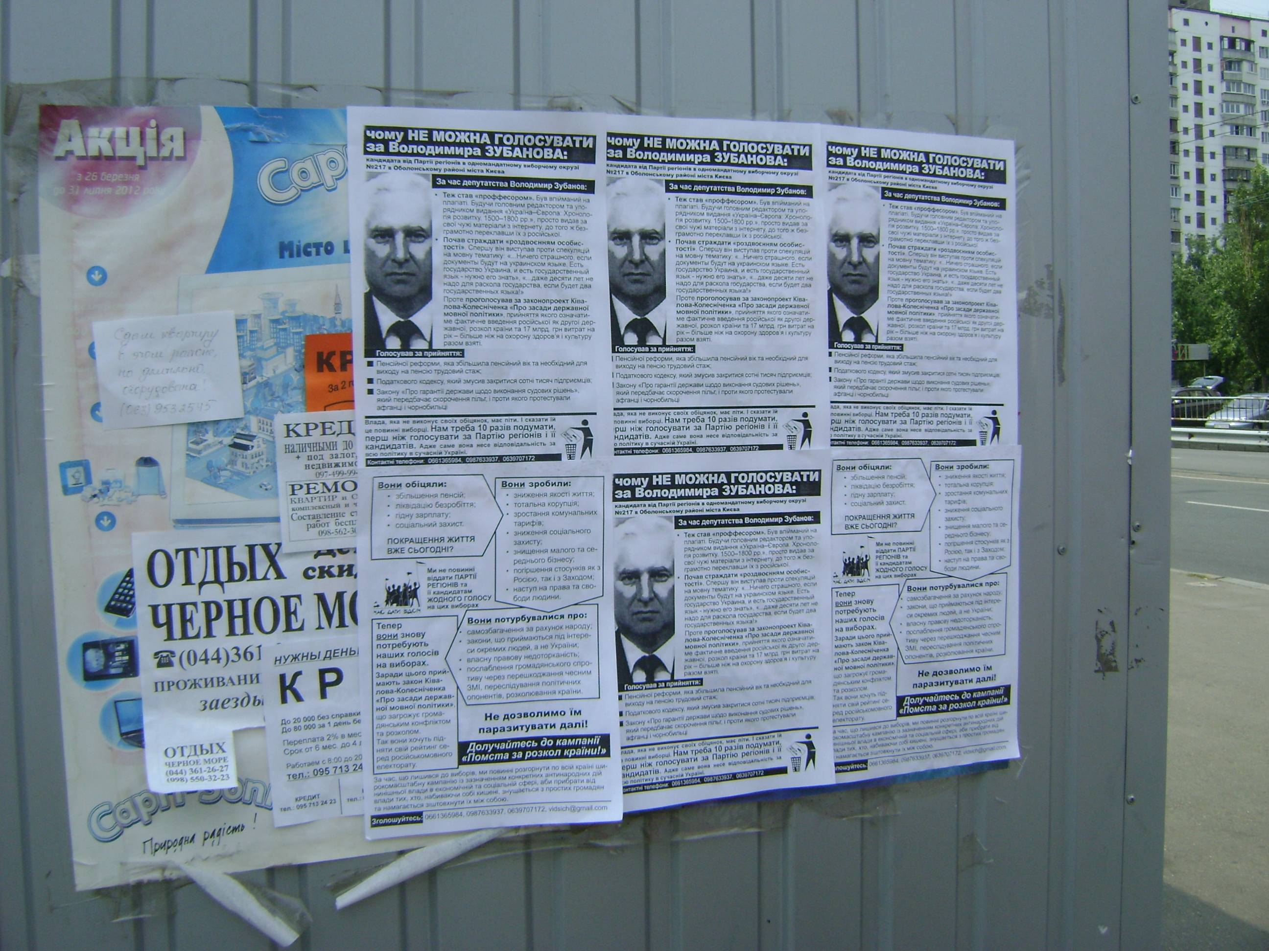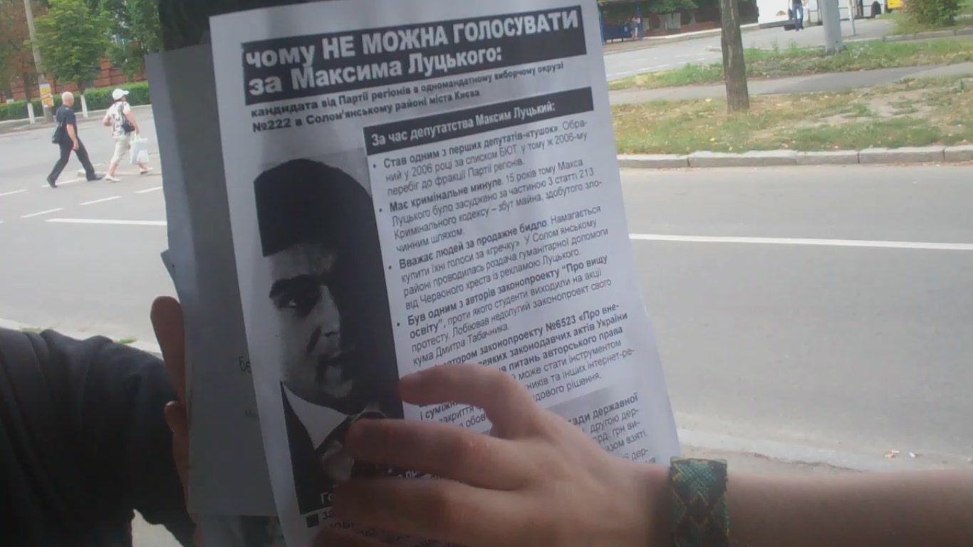 У вихідні дні активісти кампанії “Помста за розкол країни” вчергове розклеювали і роздавали листівки у трьох столичних виборчих округах, де мають намір балотуватися в народні депутати нинішні нардепи-регіонали Володимир Зубанов, Максим Луцький та Ігор Лисов, які двічі поспіль (в першому і другому читаннях) проголосували за антиукраїнський законопроект Ківалова-Колесніченка “Про засади державної мовної політики”.