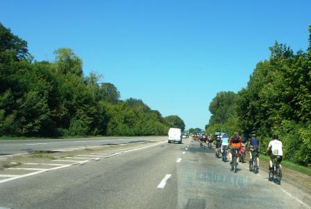 Естественно, байкеры умчались первыми, а велосипедисты растянувшимся пелетоном проехали по центральной улице Алексеево-Дружковки и выскочили на трассу в сторону Дружковки. Яркой колонной они проследовали до поворота на Белокузьминовку, встречая приветливые сигналы проезжавших машин.