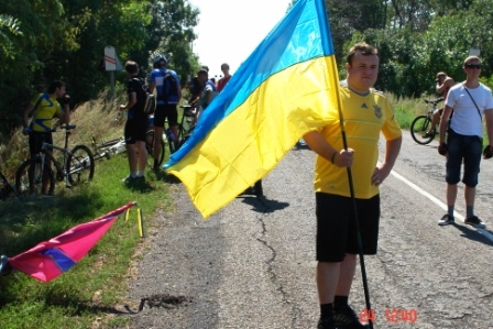Жители населенных пунктов, через которые проезжали ребята, уже хорошо знали, чему посвящен наш велопробег. В этом мы убедились в Веролюбовке, когда понадобилась помощь одному из велосипедистов после падения.
