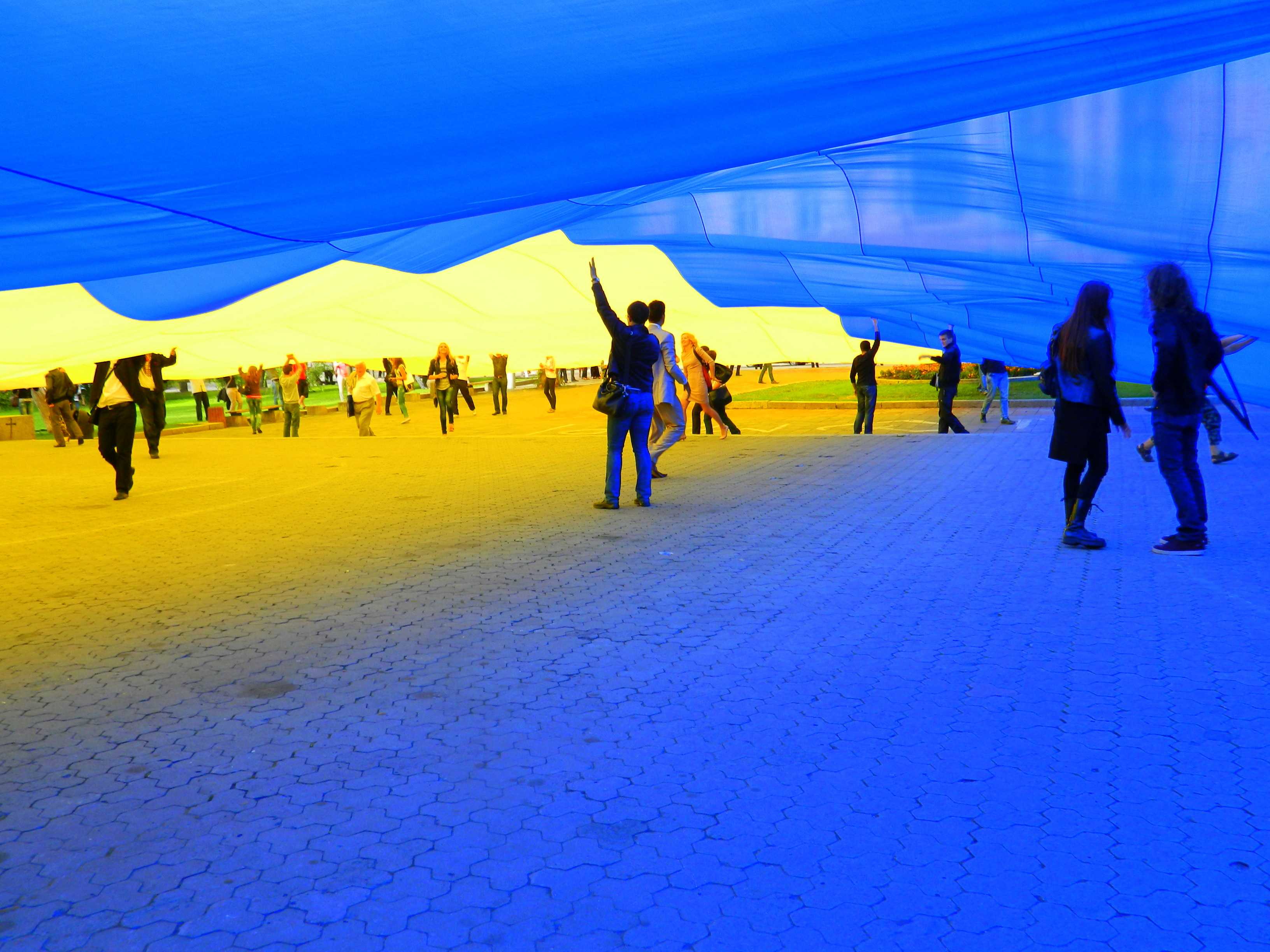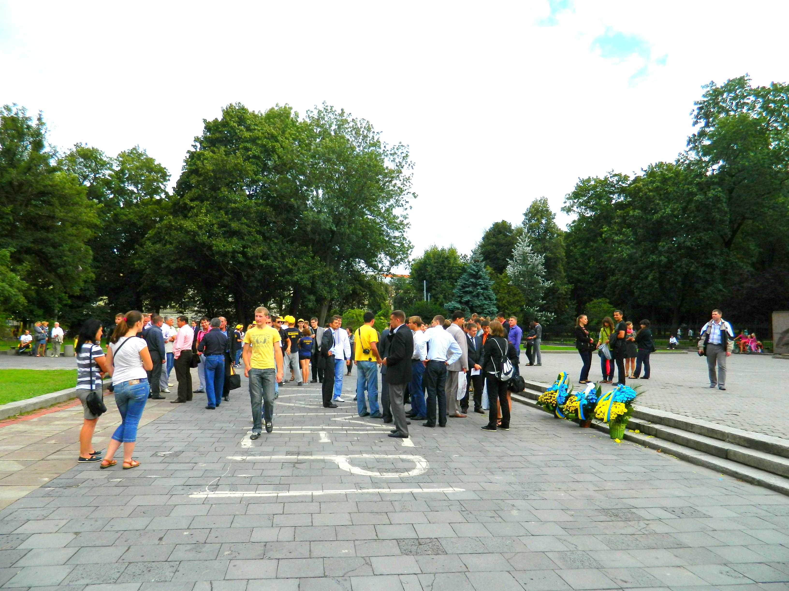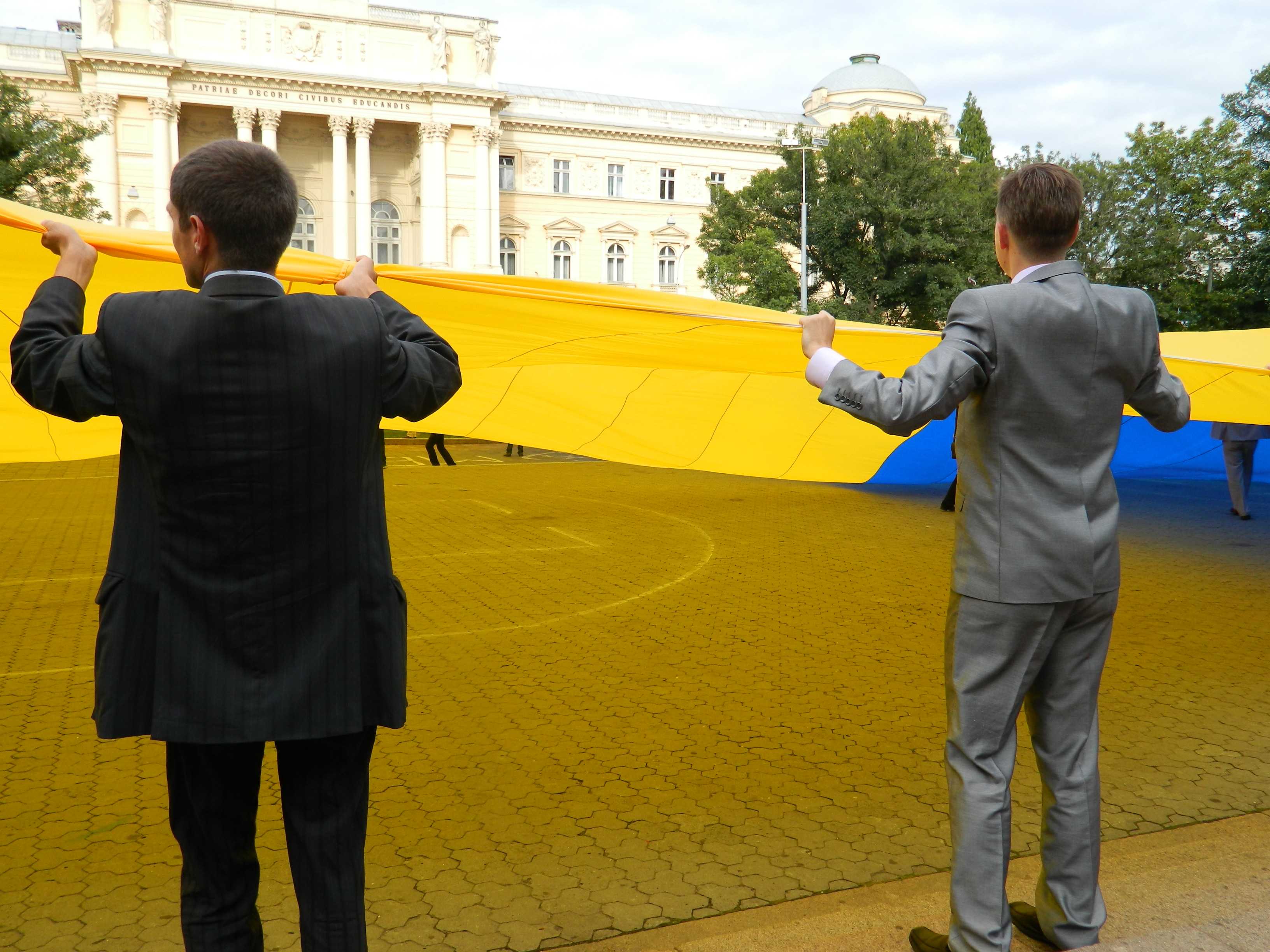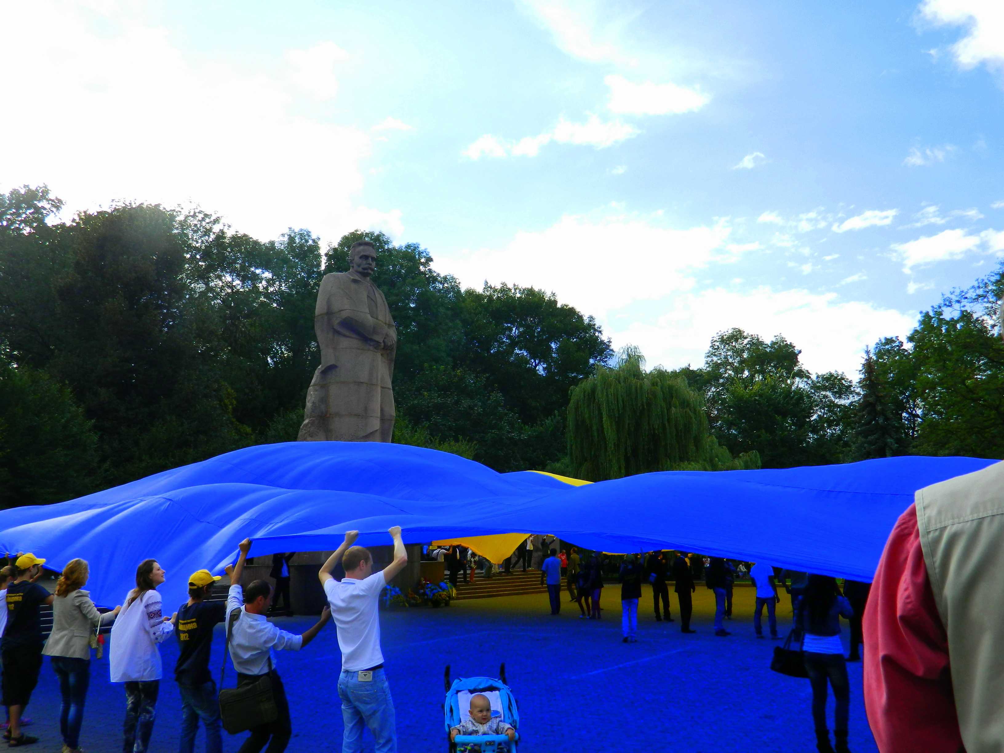 27 серпня у Львові, о 17-30 молодь розгорнула найбільший український прапор, який був спеціально виготовлений до 21-ї річниці незалежності України! Прапор вперше розгорнули у Києві 24 серпня, чим встановили Рекорд України. Розміри прапору 40х60 метрів, площа його складає 2000 м. Прапор розгортали на площі перед Львівським НУ та пам’ятником Івану Франку. В події взяли участь близько 200 чоловік.Багато молоді було у вишиванках.