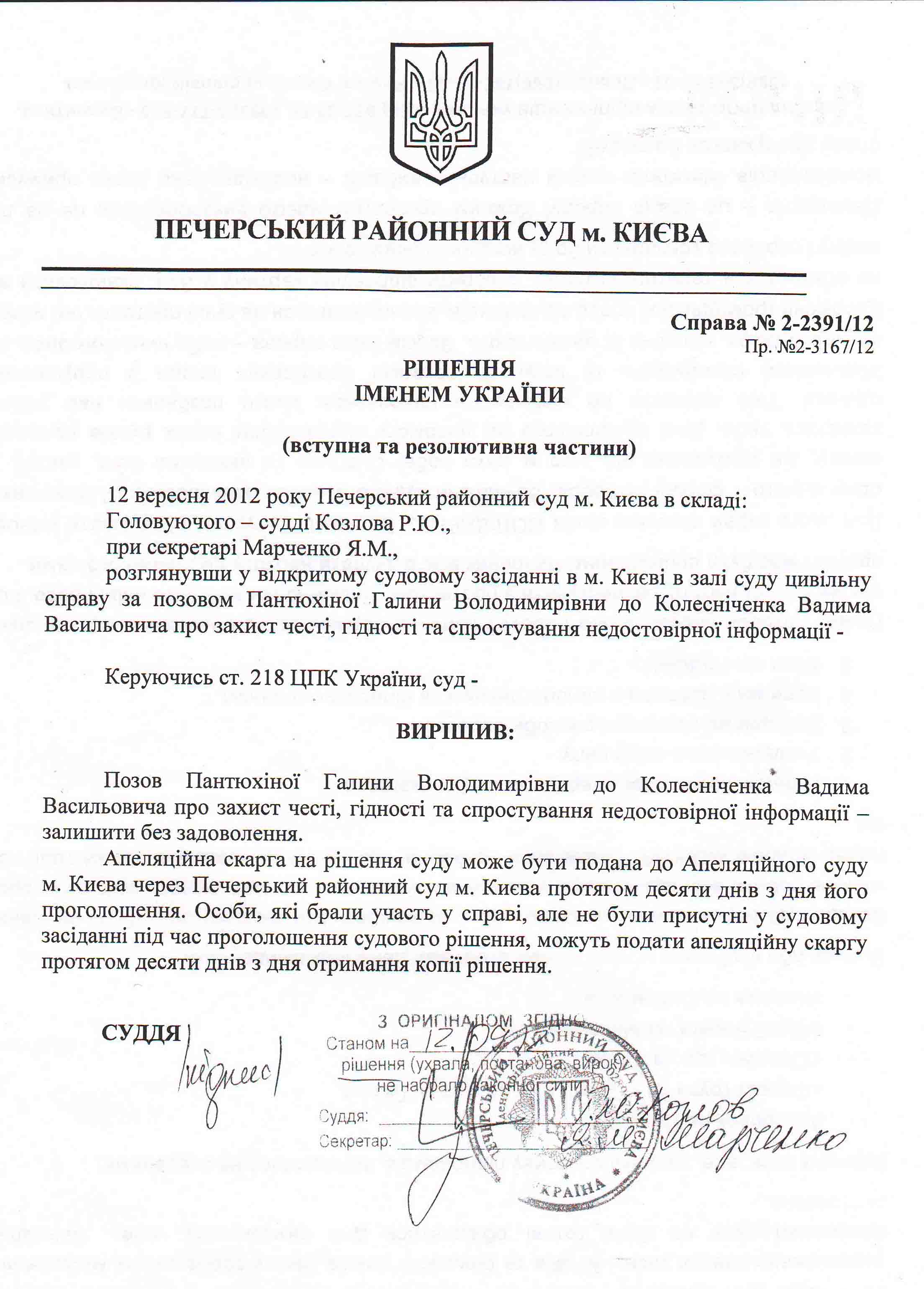Таке рішенні Печерського суду позивача не здивувало. За її словами, лише маленька іскорка надії на протилежне рішення десь теплилася. Тепер Галина Пантюхіна та її друзі з кількох ГО готують апеляцію.