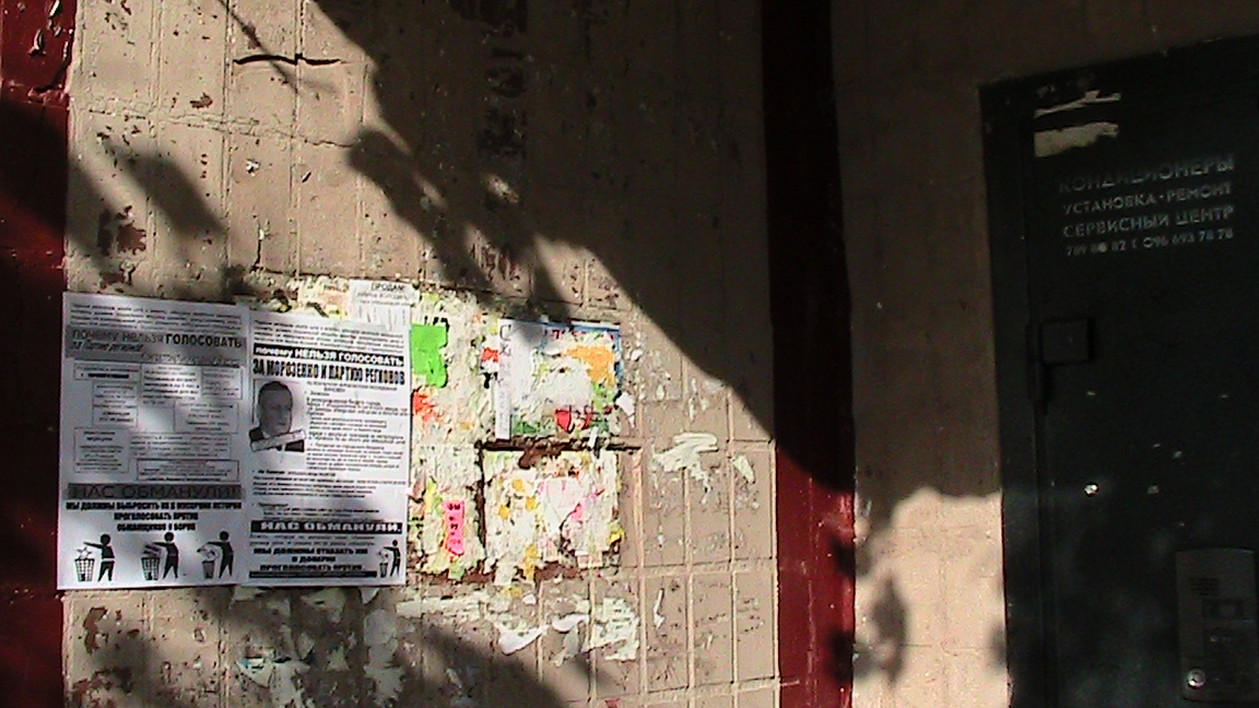 Як помітно на одному з фото, листівки у Дніпропетровську не зриваються й висять так довго, що розклеєні під час минулих акцій встигають вицвісти від дощу та сонця.
