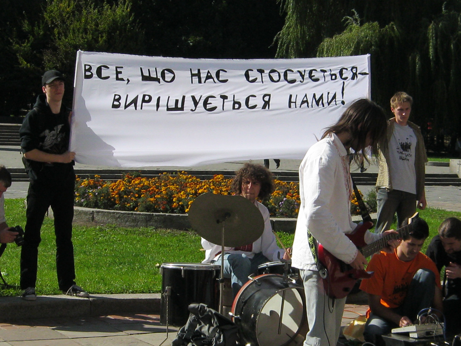 27 вересня під Львівським університетом ім. Івана Франка розпочалась кампанія «Все, що нас стосується — вирішується нами». Від сьогодні і впродовж двох тижнів студентів різних вишів Львова закликатимуть вдаватись до активної і системної протидії сьогоднішній владі.