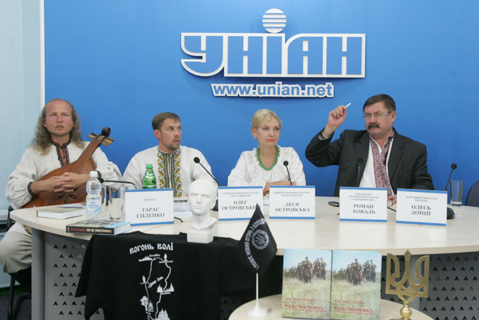 Сьогодні Леся та Олег Островські беруть участь у прес-конференції як меценати української культури – видавці цієї важливої для духовності та української історичної пам’яті книжки. Отже, передаю слово Лесі Островській”.