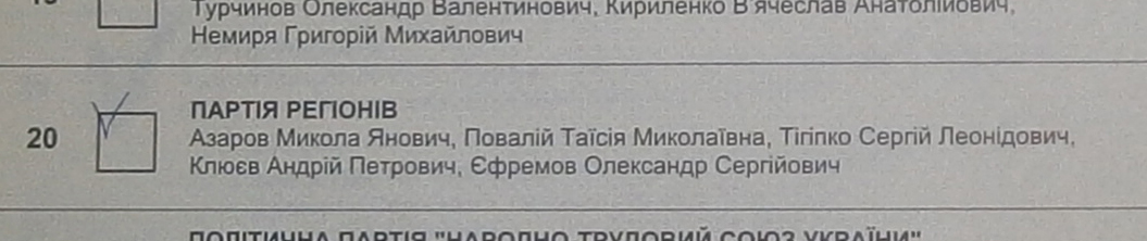 А потім – ще. І ще. І ще. У підсумку, на дільниці серед 1116 проголосованих бюлетенів знаходиться 21 бюлетень з галочкою у верхньому лівому куточку квадратика. І що характерно: всі вони – за Партію регіонів. Як один. Виборці всіх інших партій зуміли непогано поцілити своїми відмітками в центри відповідних квадратиків.