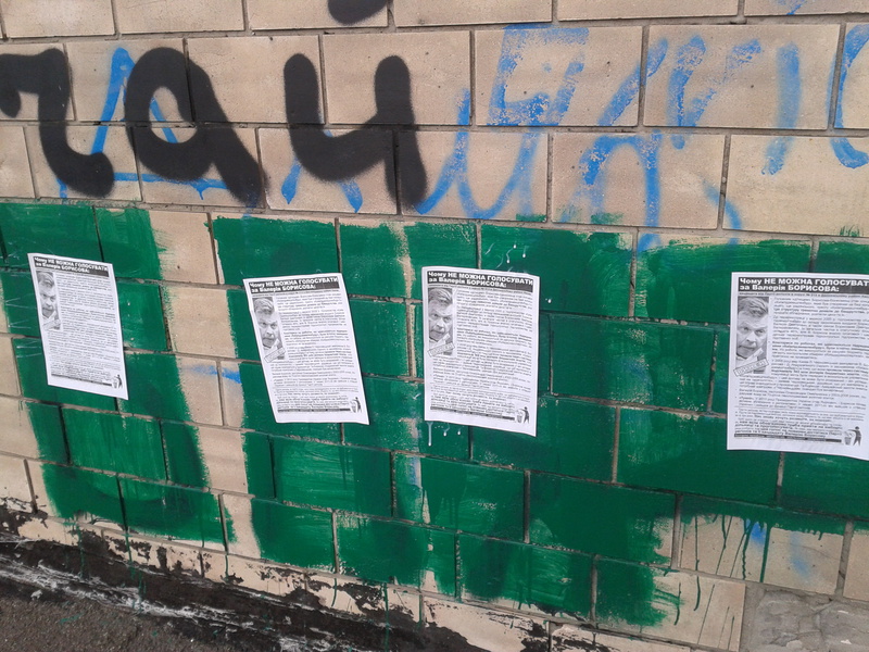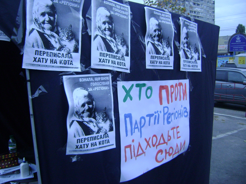 Активісти кампанії “Помста за розкол країни” поставили свій антиагітаційний намет поряд з наметом Партії регіонів у 213-му виборчому окрузі. Також у вихідні тривало поширення листівок із закликами не голосувати за Партію регіонів та її кандидата Валерія Борисова, який керує партійним столичним штабом і “скромно” приховує свою партійність, не вказуючи її на бігбордах та в агітаційних матеріалах. Ось вже понад тиждень антиагітаційний намет у 213-му окрузі виставляється кожного дня, і кожного дня відбувається розклейка і роздача листівок.