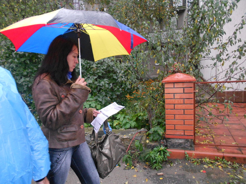 Активісти Громадянського руху “Відсіч” і волонтери знову навідалися до виборчого округу №66, аби закликати місцевих мешканців не голосувати за автора “законопроекту про наклеп” Віталія Журавського і Партію регіонів, яка знову висуває його в народні депутати.
