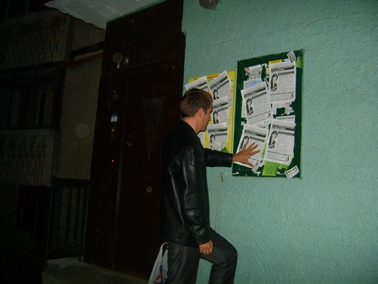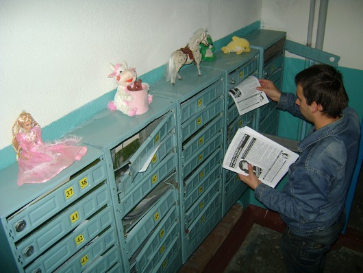 Їх 6 і 7 жовтня поширили місцеві активісти кампанії “Помста за розкол країни”, які намагаються знизити рейтинг тих політичних сил та окремих політиків, які проголосували за закон “Про засади державної мовної політики”. Мешканців Фрунзенського та Комінтернівського районів закликали не віддавати свій голос за кандидата від Партії регіонів в одномандатному окрузі № 171 Ірину Горіну.