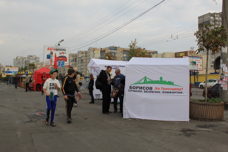 Команда Борисова нервово зреагувала на появу намету. До активістів багато разів підходили агітатори від цього регіонала й обзивали їх різними цензурними, але міцними словами, однак це лише підживлювало увагу перехожих до намету. Тоді агітатори від Борисова поставили поряд свій намет, що вже нагадує цивілізоване змагання думок. Адже минулого разу на активістів кампанії, які поширювали листівки проти Борисова, було вислано “Беркут”.