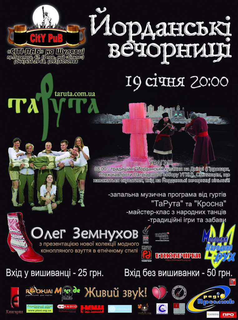 19 січня, на Водохреща, “Етно-Рок Фундація “ТаРУТА” та “Молодий Народний Рух” запрошують усіх киян та гостей столиці на традиційні «Йорданські вечорниці».