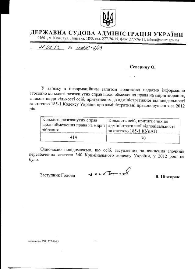 Слід зазначити, що ДСАУ не надала поки що офіційної інформації про кількість судових рішень про задоволення позовів щодо обмеження реалізації права на мирні зібрання. Ми перепитаємо.